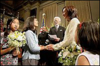 Akemi Hamai and Amy Haruyama are married by Oakland Mayor Ron Dellums as their daughters, Maya Haruyama and Anna Hamai, join in the ceremony (PHOTO: Michael Macor)