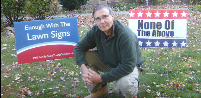 I can understand radio and TV commercials. Even robocalls. Of course they're all bull -- but at least there's an attempt to make a point. Most political lawn signs are far too small to fit a candidate's full name. Even the large ones barely tell you what party they're from.