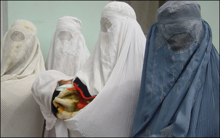 Women with a newborn baby walking out of the Faizabad maternity hospital. Over two decades of war and conflict have had dire consequences for the health of the Afghan people, especially women and children. Destruction of health facilities, the flight of trained health personnel and a Taliban proscription on training new midwives contributed to one of the highest infant and maternal mortality rates in the world. (PHOTO © Salma Zulfiqar/IRIN)