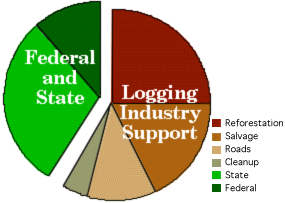 Requirements of different laws, some as old as 1908, demand set-asides to promote logging. Roughly 12 percent goes to road-related purposes, including credits to timber companies who create their own logging trails. Another $555 million was used in this period for the "salvage sale fund," preparing and admistrating areas with dead or damaged trees. These monies can also be used for road building.