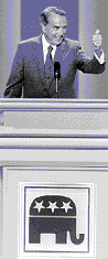 | Dole can talk good-government reform with the best: "When these political action committees give money, they expect something in return other than good government." Dole said in 1983, observing that "there aren't any Poor PACs, or Food Stamp PACs, or Nutrition PACs, or Medicare PACs." But even as Dole championed the reform cause, he worked behind the scenes to smother it. In December 1985, during his first term as Senate Majority Leader, Dole headed off a popular reform proposal by promising it would get a vote in 1986. Congress did vote on the bill late that year, passing PAC reforms overwhelmingly; yet Dole himself voted against the PAC limits, and -- as the Associated Press put it -- "he appeared in no hurry to bring the matter to the floor." Bowing to that proposal's popularity, Dole promised the Senate would vote on it for final passage in a few days. It never did. That November, Democrats captured control of the Senate, and vowed to enact reform. Again, Dole publicly supported the effort: "I do not believe there will be any effort to stall any such legislation," he promised. But the next fall, Dole led a marathon filibuster against the Democrats' bill, declaring it an incumbent-protection measure and promoting his own plan, which would have threatened him much less. In the new session of Congress convened in 1989, Dole again proposed campaign finance reform, as did the Democrats. "We Republicans are determined to bring grassroots politics back to the campaign scene," Dole wrote in an op-ed for the Washington Post. Once again, however, partisan disagreements stalled the reform drive. This time a bipartisan reform panel was convened to make recommendations, with Dole selecting half the panel's independent experts. "I do believe there is some hope we can form a bipartisan compromise based on the [panel's] recommendations," Dole said in 1990. "If we're really concerned about cleaning up the campaign sewer money, then it's about time to spray the sewer stench with a big can of Lysol." Yet just two months later, Dole and other Republicans offered legislation that completely ignored the recommendations of their own appointees for flexible spending limits. "We can either get serious or continue to make speeches and protect the status quo on Capitol Hill," Dole said, even as he insisted he could not abide by what the bipartisan reform panel recommended. Shortly thereafter, Dole and his colleagues opted for more speeches and the status quo. The stalemate has continued through the 1990s. In 1994, Dole and his fellow Republicans killed the Democrat-sponsored campaign finance bill, the most ambitious attempt at reform since 1974. And this year, with Dole again the Senate Majority Leader and setting his party's agenda, he has uttered hardly a word about campaign finance reform. Instead, in May Dole joined conservatives in calling for a rollback of presidential public financing, the one initiative thought by most reformers to have had any success at all.