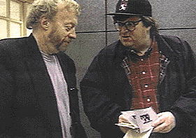 The Big One promises to make a big splash. Already, the movie studio, Miramax, has given $100,000 to education and the library in Flint, MI, as well as one-half of all profits above that $100,000. But how does a guy like Moore maintain a media niche as a critical corporate gadfly? "Making money makes it harder for them to off you," Hightower says. "A man with talent who makes money for them insures that they will keep him around. That doesn't mean they like him or don't scheme how to get rid of him. But Michael has figured out that we progressives have to be more creative and more entrepreneurial in order to get our voices widely distributed." "Obviously I do quite well," says Moore. "(With TV Nation,) I have done a show for NBC. I have done a show for Fox. I got a Miramax movie and a HarperCollins book. I ain't living at the trailer park anymore." But money and fame brings its own critics. Some, like Cockburn and the New York Press, think Moore is getting famous on a working class that exists only in stereotypes. Moore is circumspect on the issue. "When you come from the working class, you are happy when one of you gets out," he says. "You celebrate the fact that someone has gotten out. The only people who have ever been upset about how much someone like me makes are people who are already making the money or never had to work for their money. And they are pissed that somehow I slipped in under the radar and I got a little money. "It is 'fuck you' money is what it is," he says as he begins to laugh heartily. "Because I say whatever I want to and I won't ever have to worry about a fucking thing for the rest of my fucking life. "If you are a conservative politician or a business man, I am the last guy you want to have that fuck you money in his pocket -- because I ain't gonna like get rich and then go, 'Hey, man, let's go buy a yacht.' I am going to turn around and use that money to try to make this world a better place. That sounds kinda hokey, but that is the way it is. You gotta remember I went to the seminary to be a priest. I never left the seminary, I just like girls." At the same time, Moore says he is not afraid of getting lost in the fame and the wealth. He says he gives away between 25-30 percent of his income to independent filmmakers and charitable causes directly benefiting workers. He says he keeps a six-month cushion in the bank in case his income ends for whatever reason. "That is a helluva lot more than many people have these days, but it is not a lot. On the food chain of Hollywood, I am pretty close to the bottom feeders."