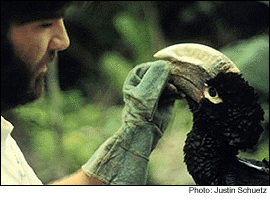 In a three-year study in a remote Cameroon rain forest, biologists at San Francisco State University and the University of California at Davis have discovered that the toucan-like birds disperse seeds of nearly a fourth of the tropical trees, flying 100 miles or more through the forest in search of ripening fruit. Until this study, the birds were thought to be sedentary, residing throughout the year in patches of rainforest. As other important seed dispersers such as elephants and primates continue to decline in the region due to habitat destruction and hunting , hornbills become even more important for rain forest regrowth and survival. "The survival of the rainforest appears to rely to a large degree on the hornbills' ability to disperse seeds of so many species," said Thomas Smith, associate professor of biology at San Francisco State University and co-author of two scientific papers just published on the Cameroon study. "If we have any hope of protecting rainforests we need to protect not just the pattern of biodiversity but also the processes that create it. Our work suggests that by dispersing seeds, these magnificent birds are vital agents of biodiversity. "The birds' surprisingly large range suggests that their own survival depends on preserving large expanses of rain forest intact," added Smith, who also holds a post as associate professor at the Center for Population Biology, University of California, Davis. The Cameroon study found that nearly all the seeds dispersed by the hornbills germinate successfully, making the birds one of the prime agents of lowland rainforest regeneration.