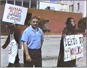 Protests and campaigns against McDonald's continue in many countries. On October 16, "World Day of Action Against McDonald's," activists in several North American cities and elsewhere blocked drive-thrus, disrupted business harassed patrons, and hung banners denouncing the fast food giant as "McKill," McDeath," McMurder," and much, much, McWorse. Violent confrontations inside restaurants between patrons and protesters were reported in Santa Cruz and Muncie, Indiana, with activists were maced by police and arrested in Minneapolis. Approximately 50 other protests were peaceful. |